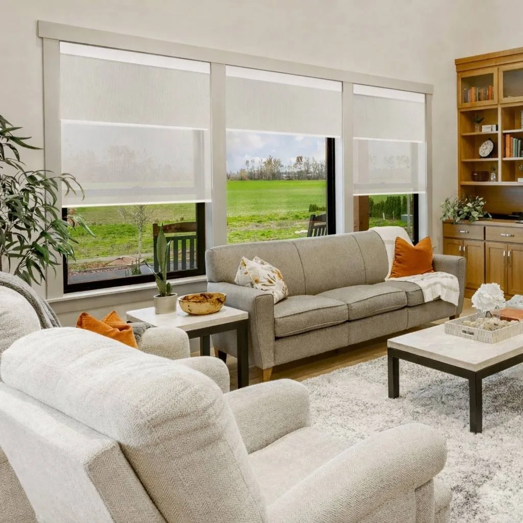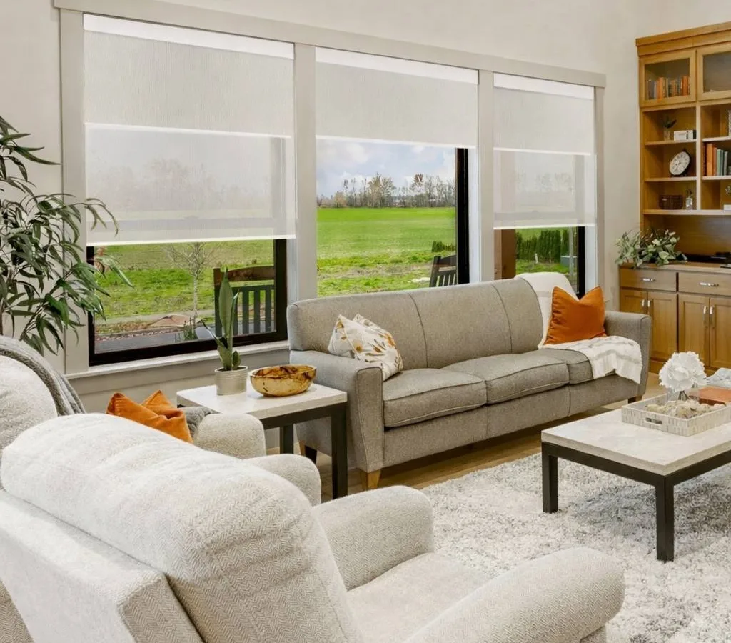 Automated shades block heat and glare by day, insulate at night, and run on schedules so rooms stay cooler while energy bills drop.