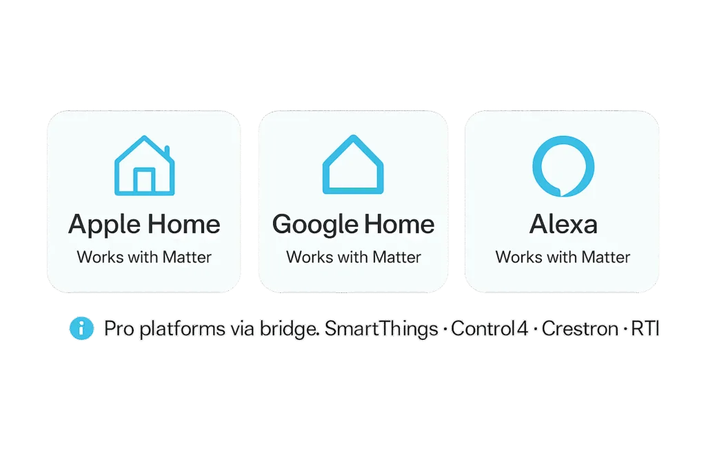 - Matter-ready – Add to Apple Home / Google Home / Alexa via a Matter hub.
